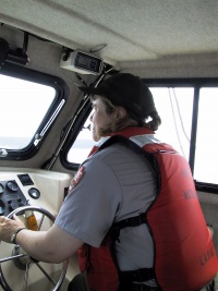 Die Bootsführerin Debbie vom National Park Service fährt uns sicher mit dem Transportboot bis zur Leuchtturminsel.