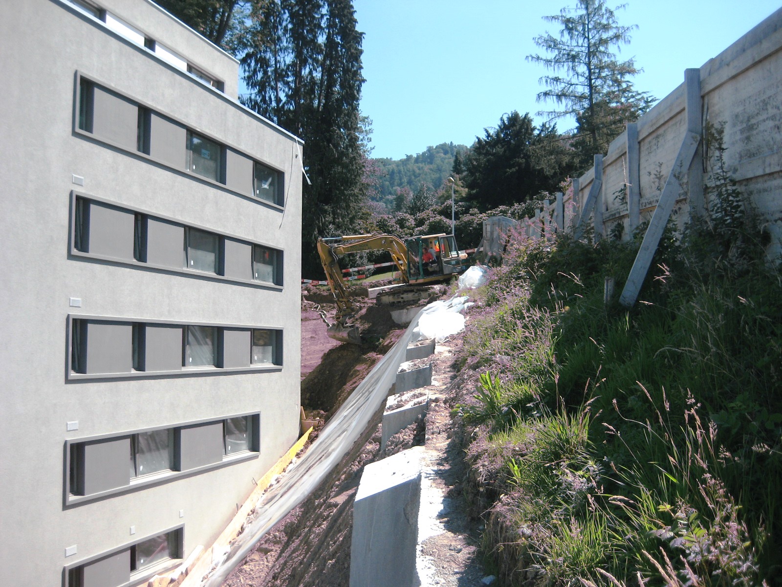Abschliessend ist die gesicherte Böschung bereit für die Begrünungsarbeiten.